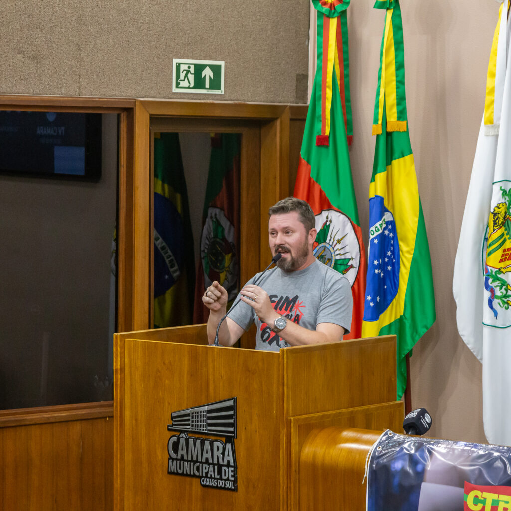 Para o presidente da CTB-RS, Rodrigo Callais, o debate em Caxias do Sul reforça a urgência de mudanças. Em sua fala, afirmou que a mobilização precisa avançar politicamente e declarou que o objetivo é “não deixar nenhum deputado ir votar a favor dessa escala”, reforçando a pressão sobre o Legislativo para barrar a manutenção do modelo 6×1.