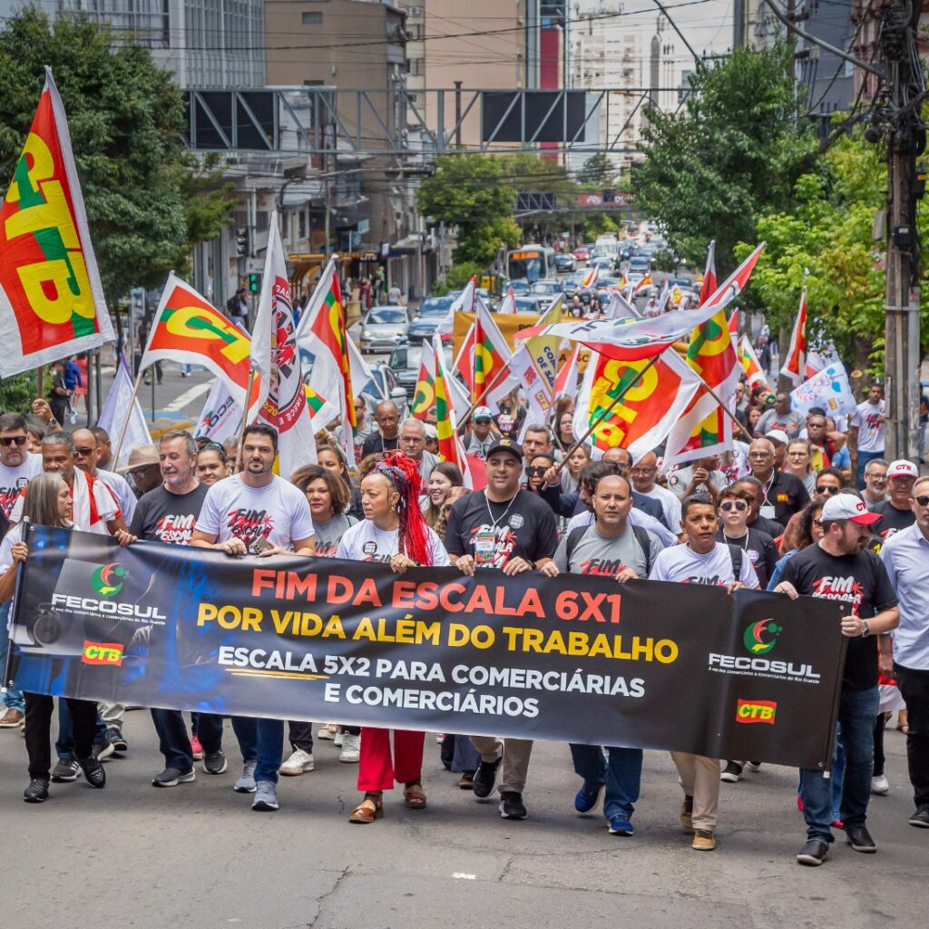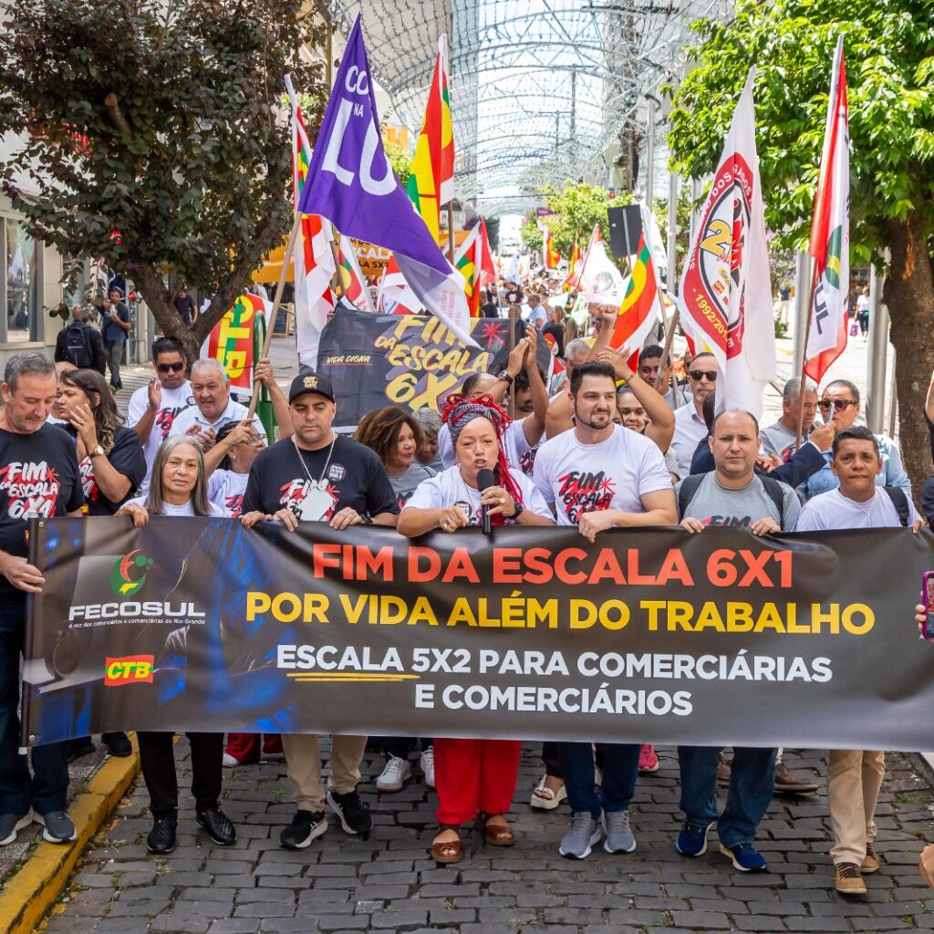 Uma grande caminhada pelas ruas centrais de Caxias do Sul marcou o encerramento do 1º Encontro Nacional dos Trabalhadores e Trabalhadoras do Comércio e Serviços da CTB. Realizado entre os dias 25 e 27 de fevereiro, o encontro reuniu mais de 200 representantes sindicais de todo o Brasil na Serra Gaúcha e consolidou a defesa do fim da escala 6×1 como prioridade nacional da categoria.